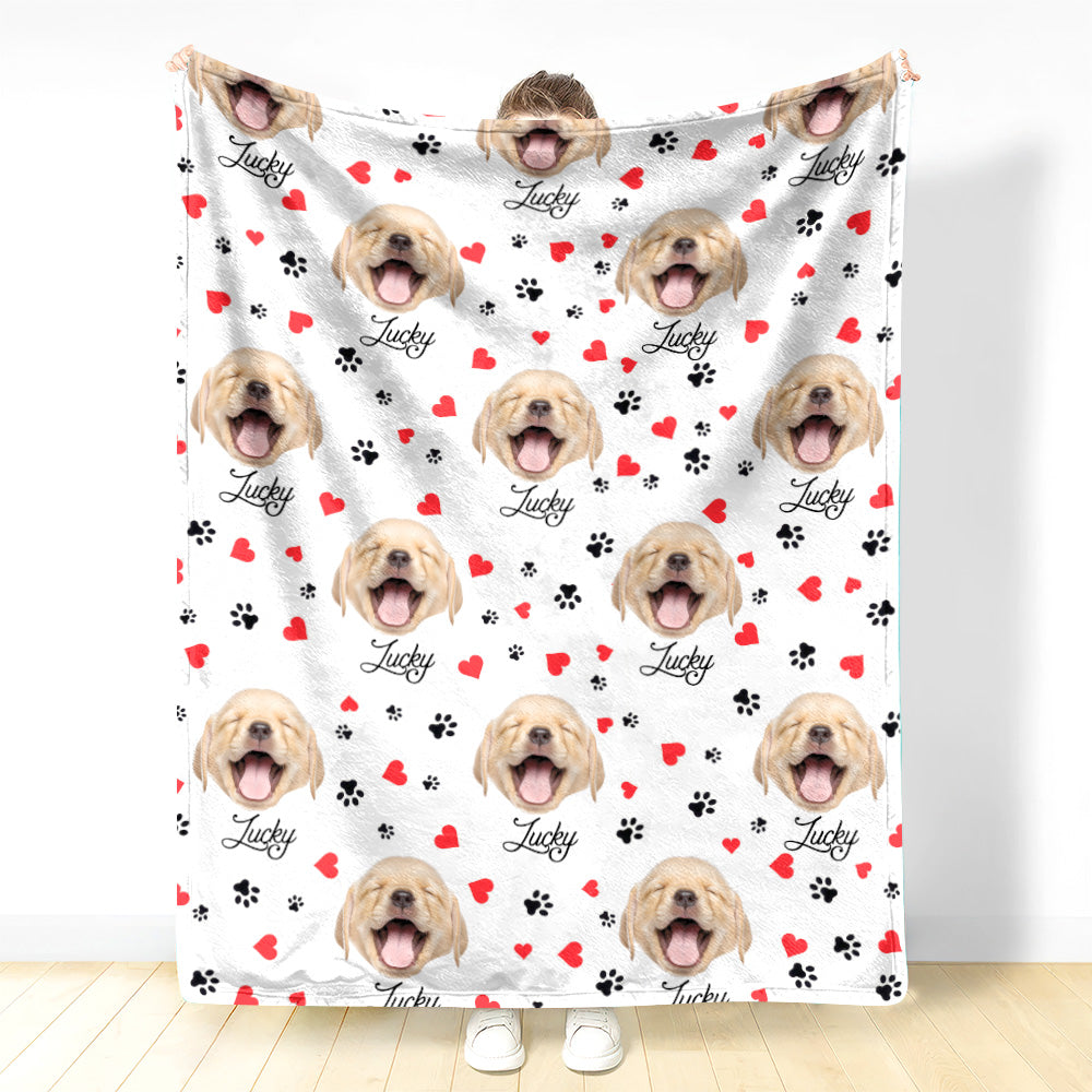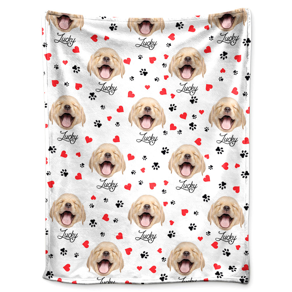 Personalized Dog Face And Paws Cozy Blanket