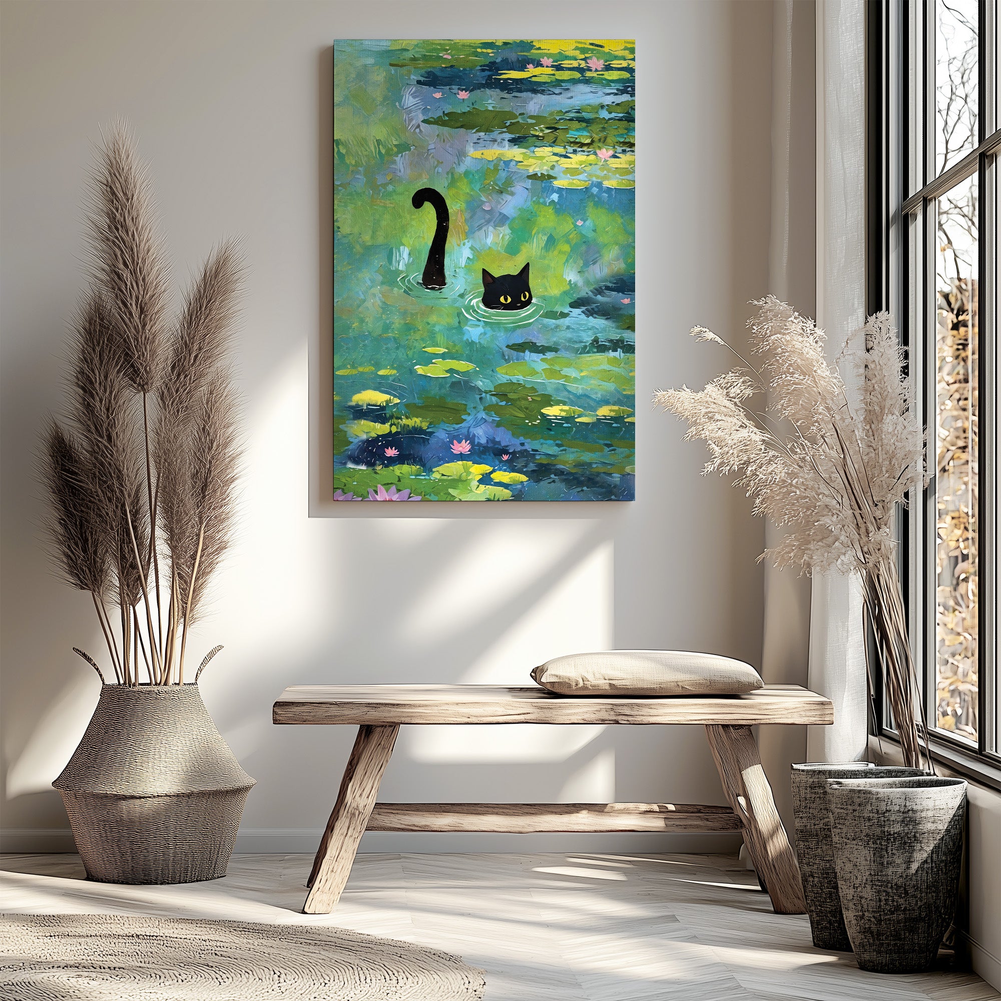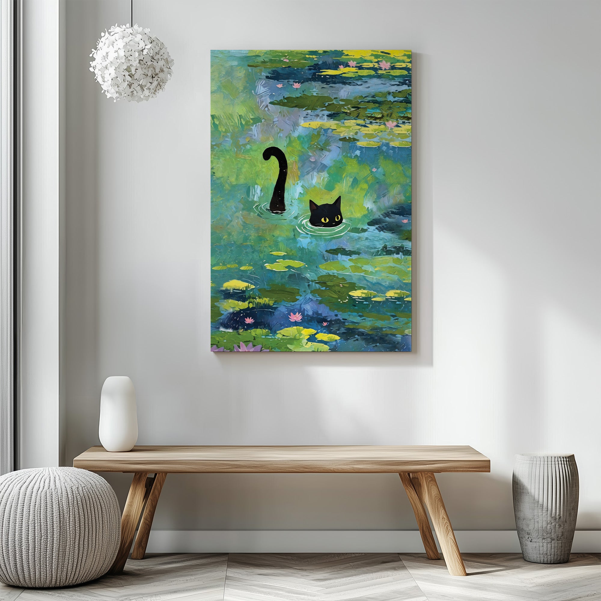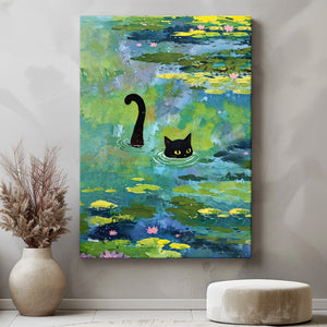 Cat In Lotus Pond Canvas - Best Cat Canvas