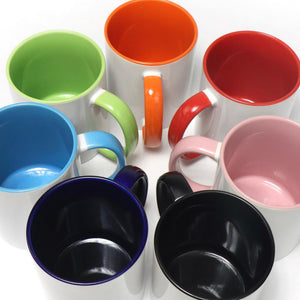 - Mug's inner and handle are various colors, mug's body is standard white color.
