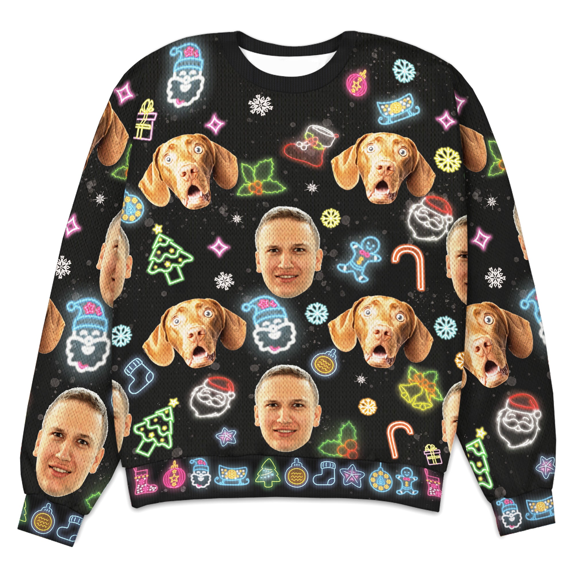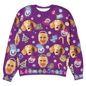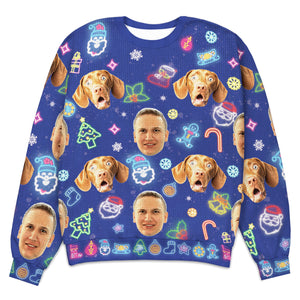 Personalized Face Neon Style Light It Up Knitted Sweater